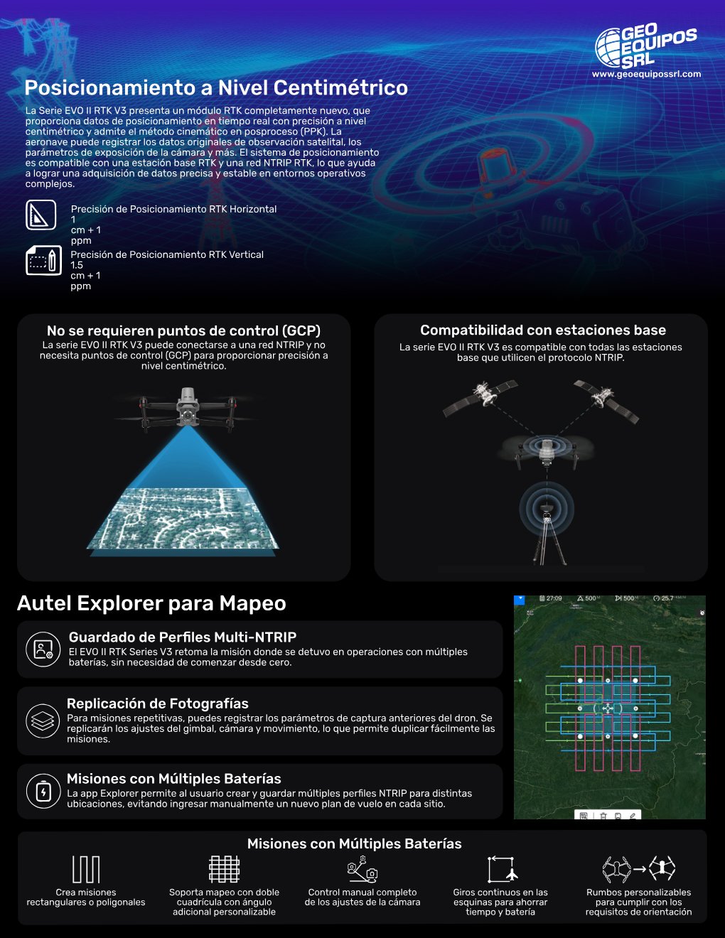 | Peso (con hélices y batería) | 1250 g ±0,5 g (EVO II Dual 640T RTK V3) / 1237 g ±0,5 g (EVO II Pro RTK V3) |