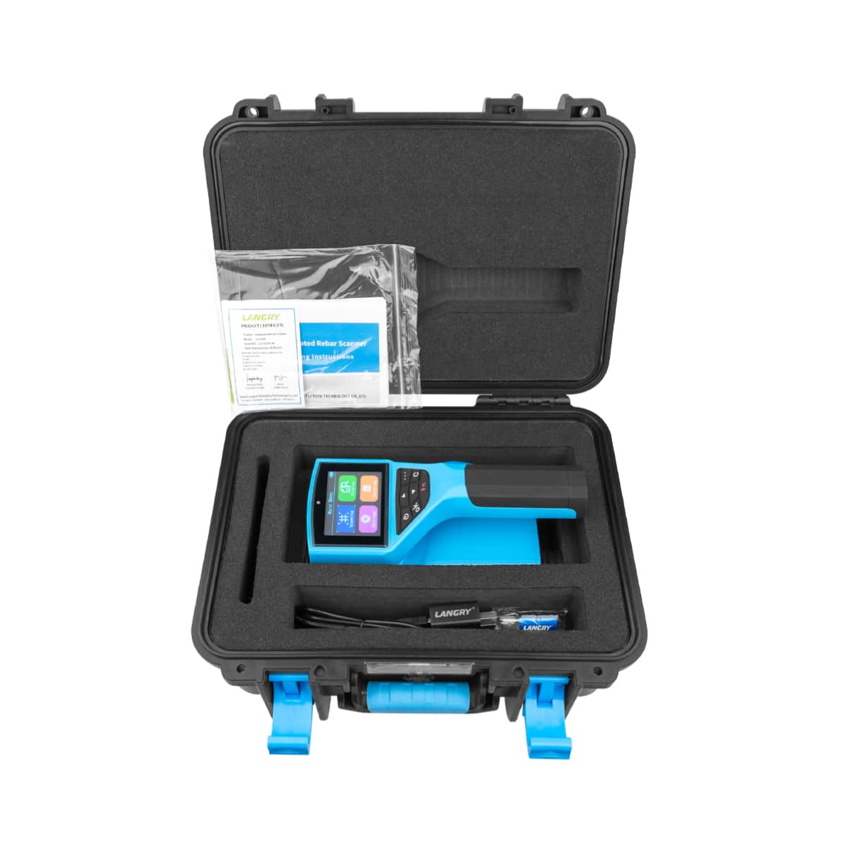 El escáner de barras de refuerzo Langry LR-G200 es una herramienta avanzada diseñada para la detección integral en estructuras de hormigón armado. Este dispositivo no solo detecta la posición, distribución y orientación de las barras de acero, sino que también mide el espesor de la cubierta de hormigón y estima el diámetro de las barras. Su funcionalidad se complementa con un software de análisis de datos multifunción, facilitando la importación de datos al computador para un análisis y archivo más profundos, manejo de información de componentes y datos de medición, y evaluación de datos de detección según criterios de calidad de construcción, presentando la información de manera gráfica.